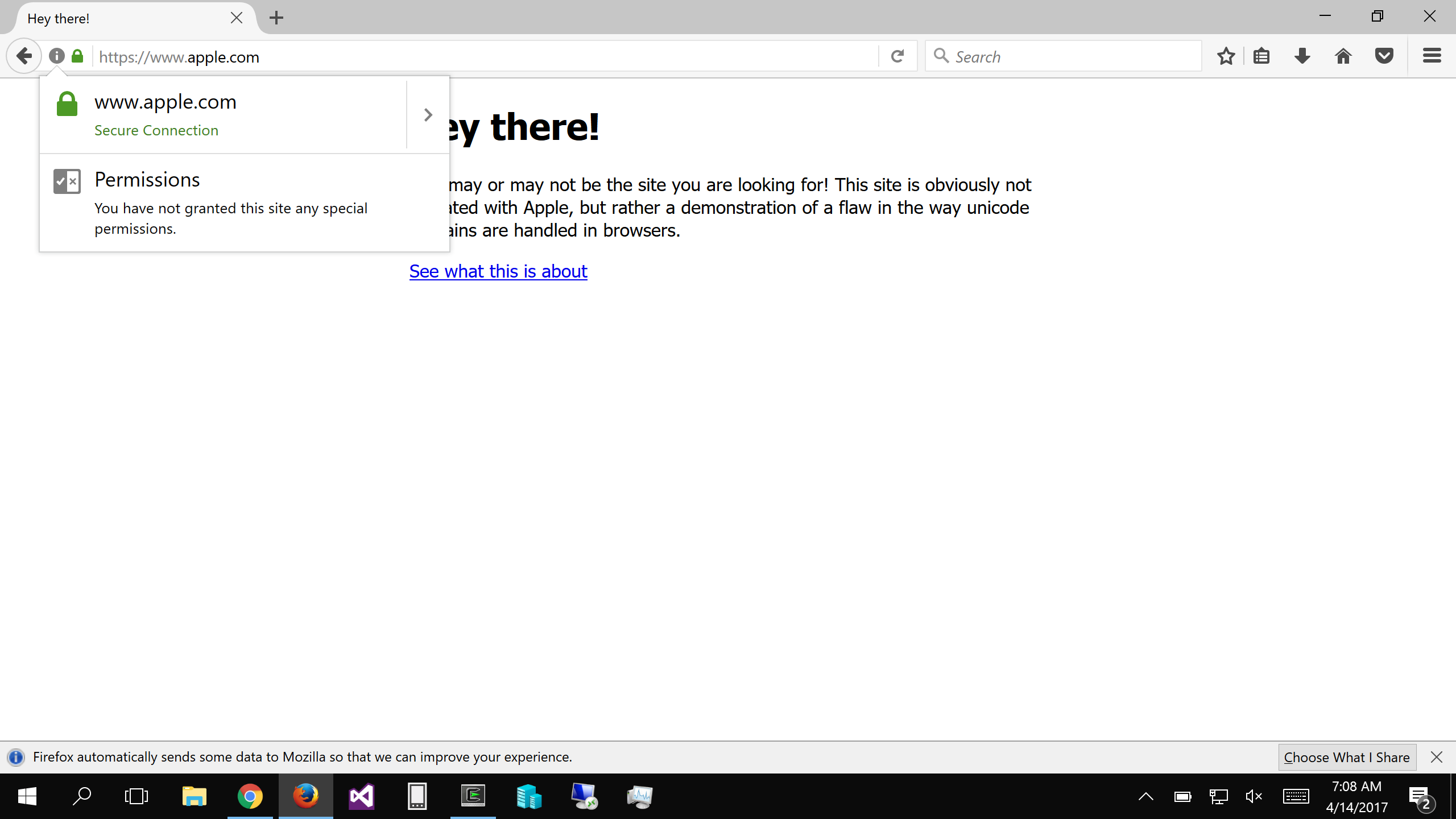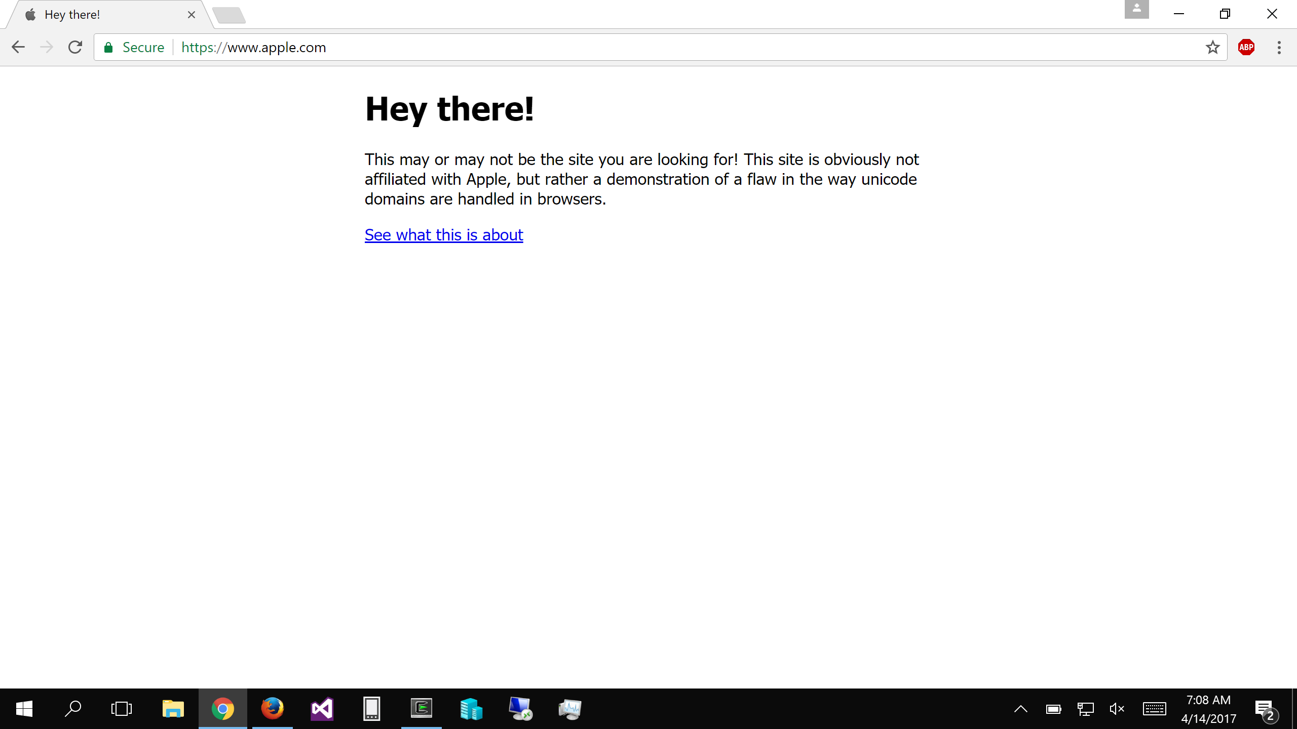 The problem is that this method does not work if the attacker Replaced not a part of the letters, but all letters of the domain to symbols of another alphabet. In the above-mentioned domain of the “apple company” all five characters are replaced with Cyrillic characters. In Punycode, it turns out “xn--80ak6aa92e.com”, but you can see above that the browser does not protect against such an attack.