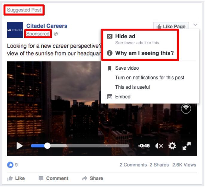 For example, Facebook tags advertising banners in several ways that are easily identified by eye And are recognized by the perceptual blocker.