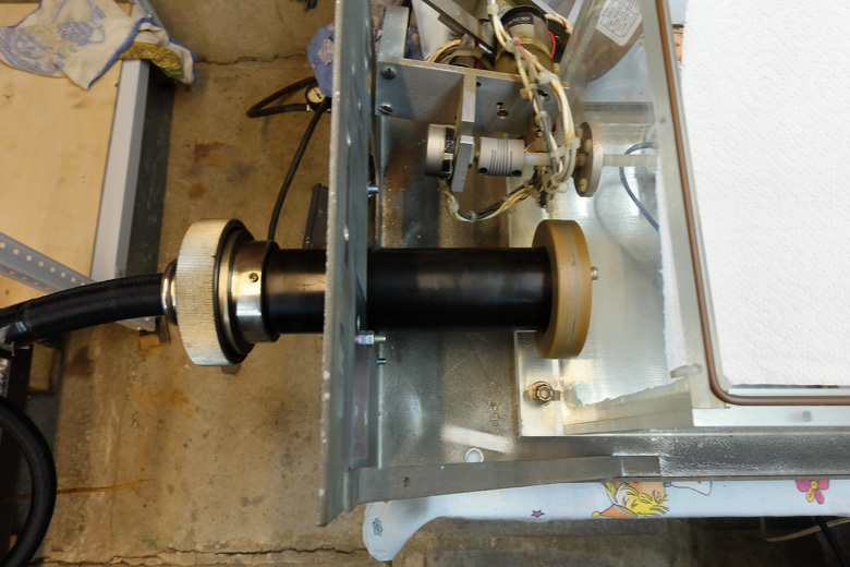 The difficulty is that the entire cathode is under a negative high voltage, and it is necessary to “add” the voltage necessary for the cathode to this voltage. It was apparently not fashionable to make pulsed power supplies at that time, so an alternating transformer with a motor drive was made here, and a huge transformer for mixing this voltage into the high voltage part.