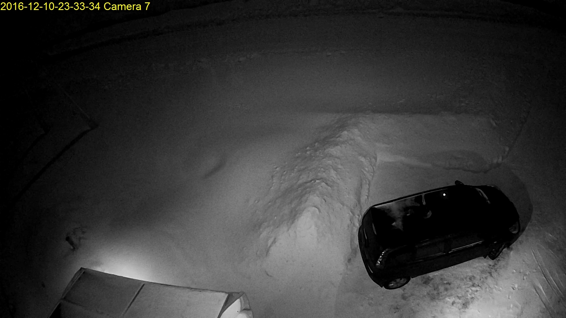 The third shot is the work of the IP camera at night with the searchlight turned off. Illumination IR illumination of the camera. In addition to the increased resolution (1920 * 1080 vs. 704 * 576), we see a much sharper picture, because the processing of the frame is carried out by the camera itself and the video surveillance server is already sent to the video surveillance server.