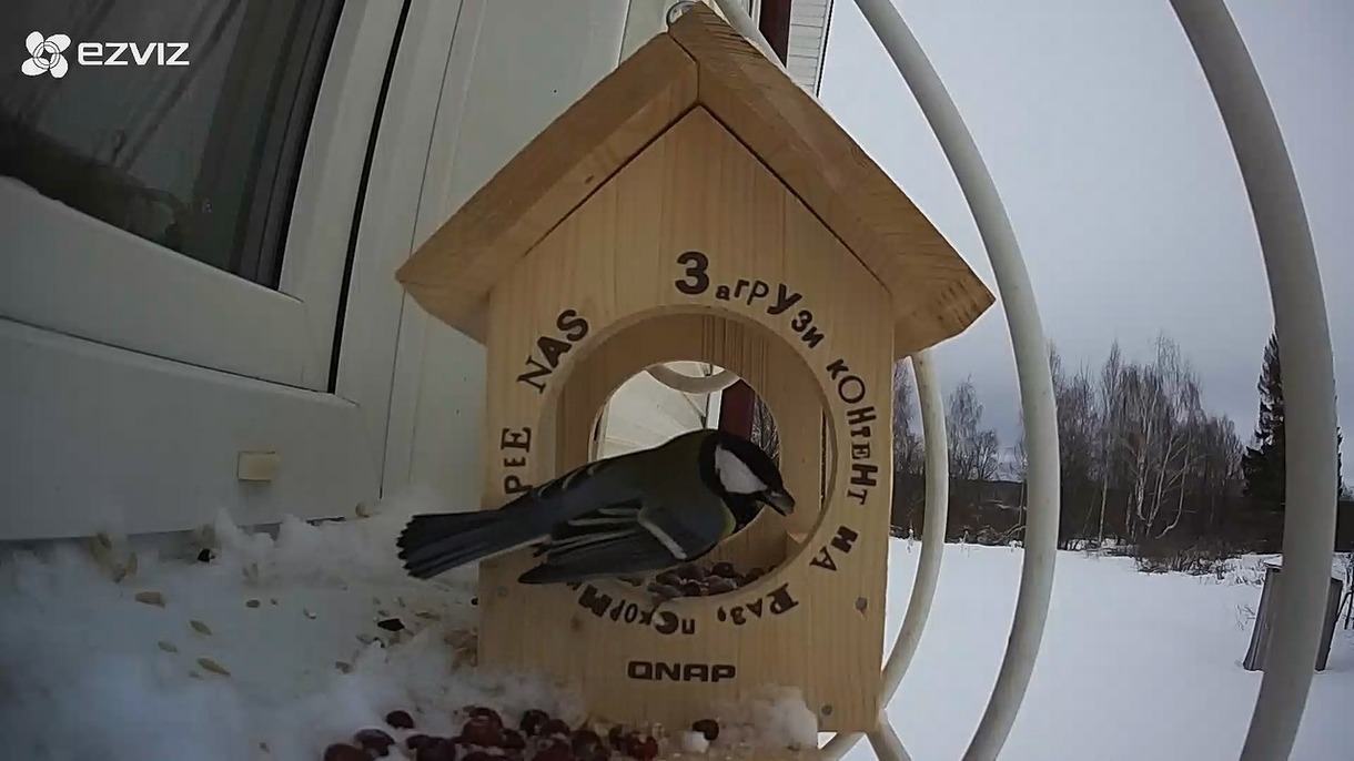 Just 5 minutes from the recording of the camera Ezviz C3S, installed next to the trough.