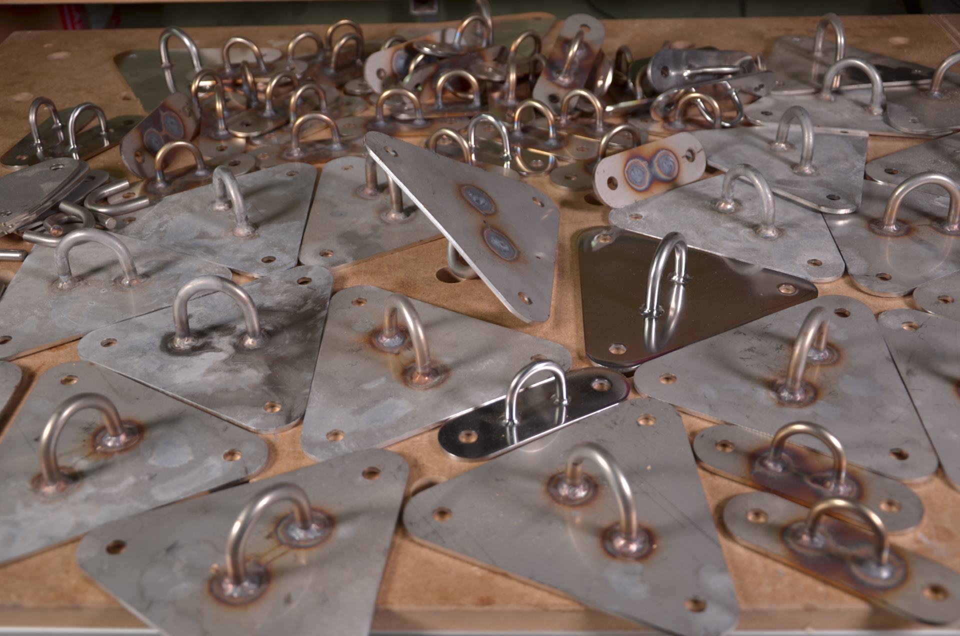 According to the technology brackets a lot of thought and decided not to engage in artisanal work, and make an adult, to order in production. Of course, no one took it. Laser cutting in the city was not, with the Moscow and St. Petersburg offices, an adequate dialogue was not remotely established, it was closer and much cheaper for us to order in Lithuania. The loops were made by themselves, the welding was entrusted to a good specialist. When testing was carried out, the hammer was able to break the bracket, so to ensure maximum reliability, loops were welded from both sides of the plate. This is a little more expensive, but we are calm for strength. And then the tiresome polishing process (while in manual mode) and here’s the result: