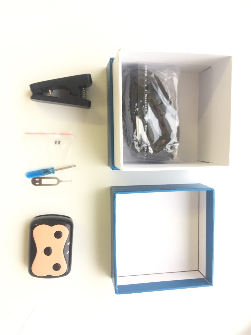 After the trackers arrived, we hastened to unpack them. So, meet: iPet Mini.
