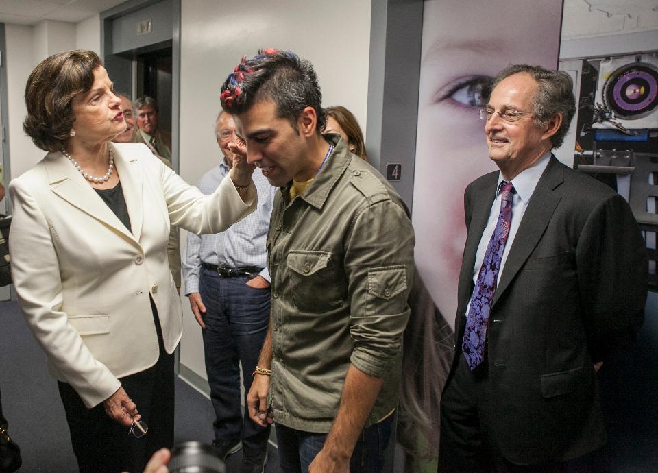 Senator Dianne Fainstein and Bobak Ferdauzi, participant of the Cassini-Huygens and Curiosity missions, known as “dude” With the Iroquois “